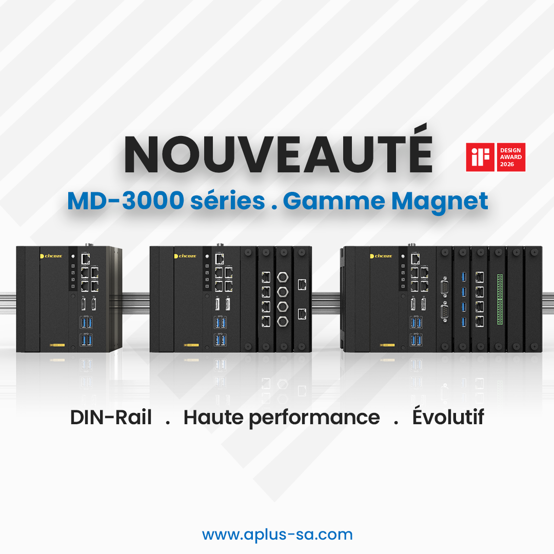 Le MD-3000 s’adresse aux intégrateurs et responsables de production qui déploient des applications de vision machine, d’IA embarquée ou de contrôle qualité automatisé dans des espaces contraints. Distribué et supporté par APLUS Système Automation, fabricant et intégrateur certifié ISO 9001 et AQAP 2110.